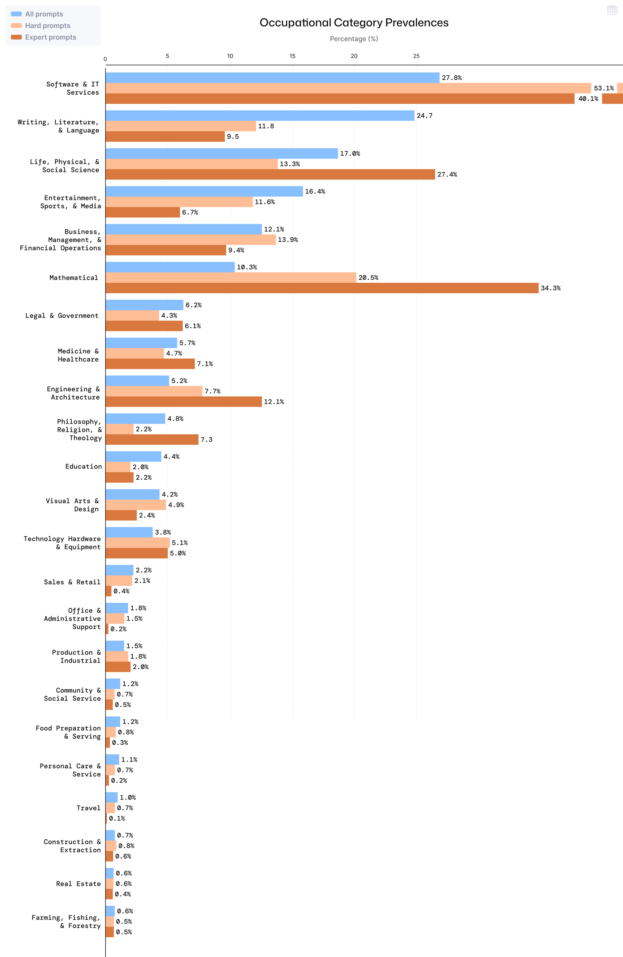 Figure 10. Percent of expert prompts in each occupational category.