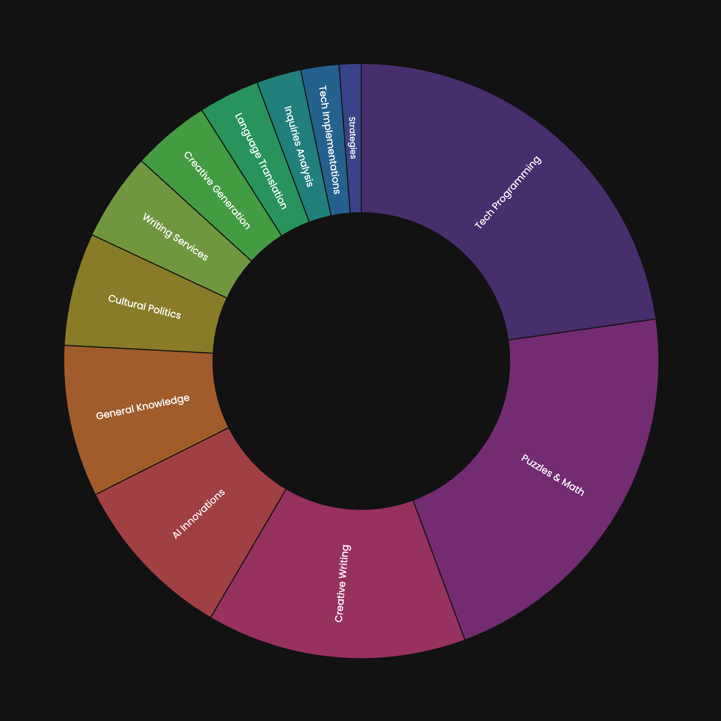 Compared to Tech Programming, model rankings for the other two largest broad categories, Creative Writing and Puzzles & Math, shifted significantly.