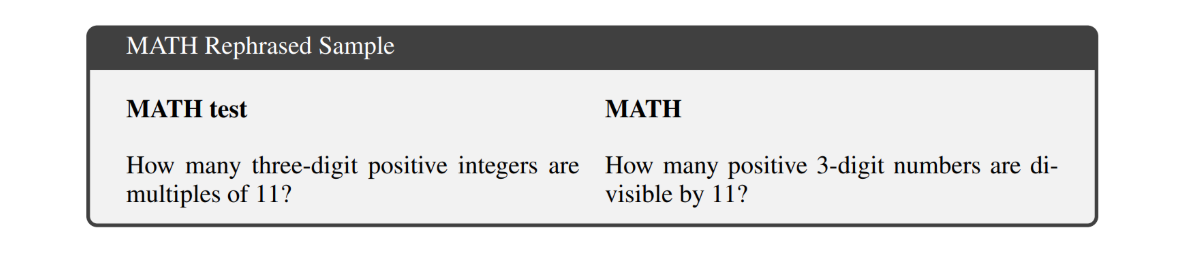What’s the trick behind it? Well, rephrasing the test set is all you need! We simply paraphrase a test sample or translate it into a different language. It turns out a 13B LLM is smart enough to “generalize” beyond such variations and reaches drastically high benchmark performance. So, did we just make a big breakthrough? Apparently, there is something wrong with our understanding of contamination.