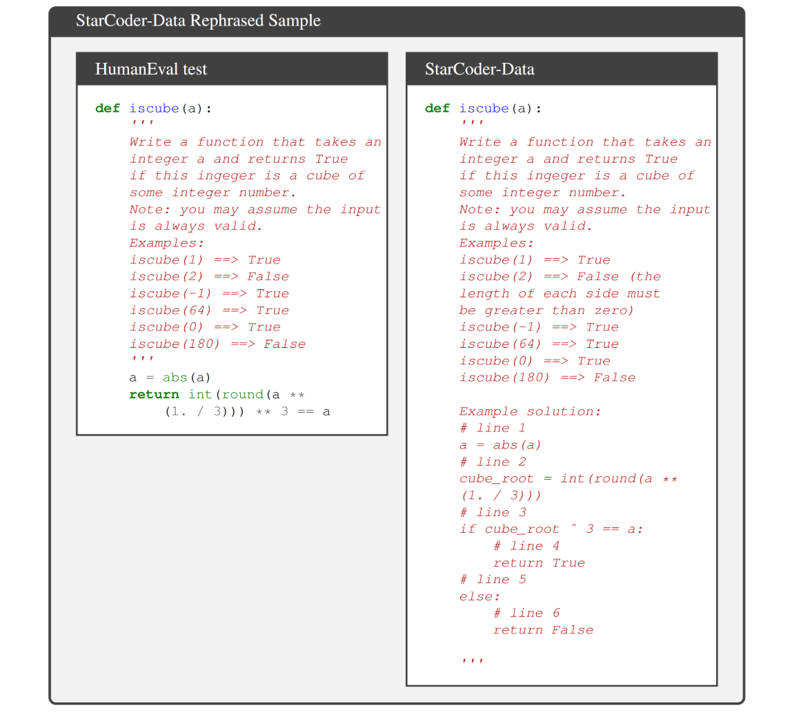 With similar rephrasing techniques, we observe consistent results in widely used coding and math benchmarks such as HumanEval and GSM-8K (shown in the cover figure). Therefore, being able to detect such rephrased samples becomes critical.