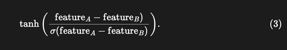 For example, the first new feature, token length difference between answer A and answer B, would be expressed as