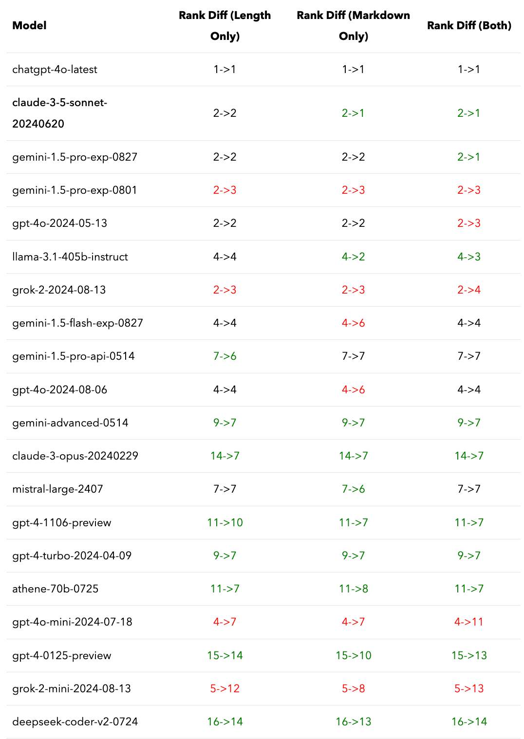 We controlled for the effect of length and markdown, and indeed, the ranking changed. This is just a first step towards our larger goal of disentangling substance and style in Chatbot Arena leaderboard.