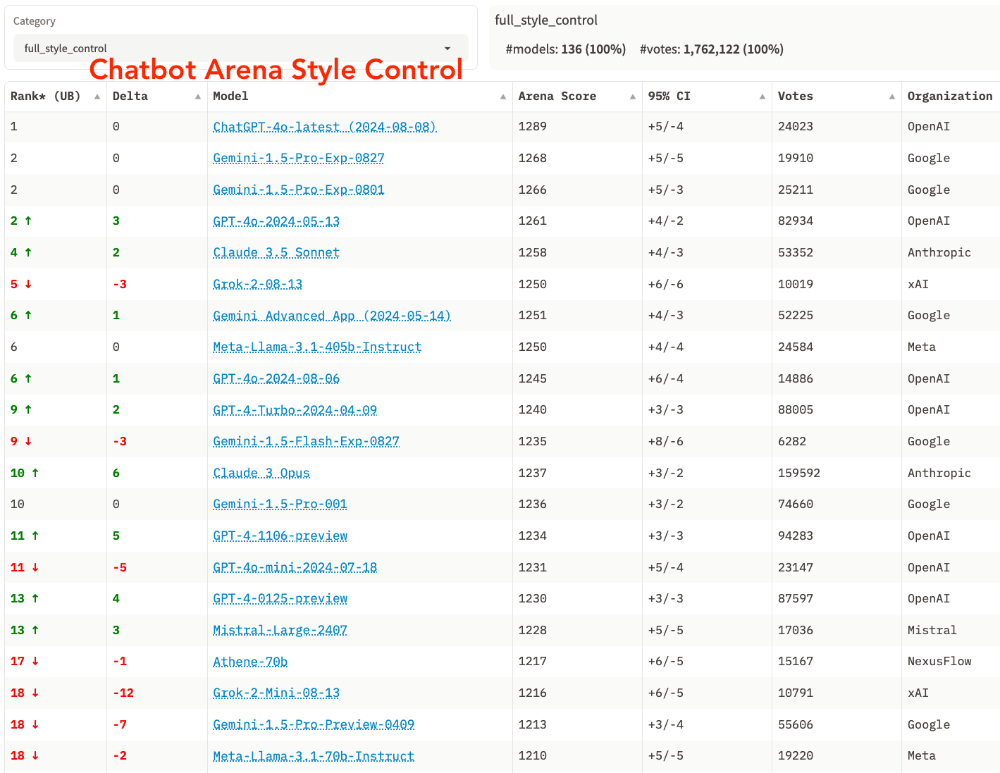 Full Leaderboard with Style Control